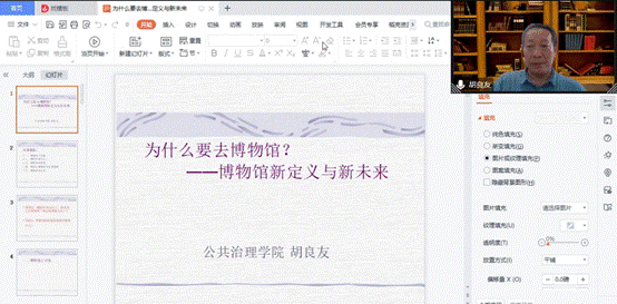 11月23日,我校公共治理学院特邀新闻编辑胡良友作题为“为什么要去博物馆?——博物馆新定义与新未来”线上主题讲座。公共治理学院近120余名师生参与学习。