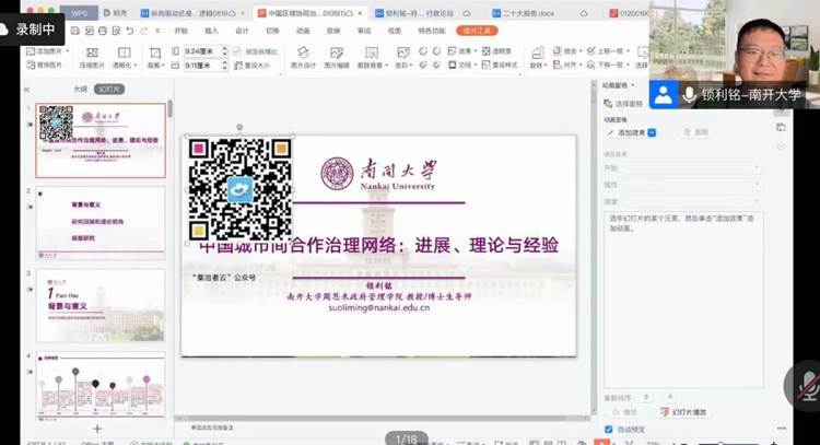12月7日,南开大学周恩来政府管理学院教授、博士生导师锁利铭教授,应邀为我校师生作题为“中国城市间合作治理网络:进展、理论与经验”的线上主题讲座。公共治理学院120余名师生参加学习。
