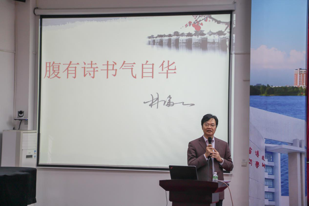 4月15日,由beat365英国官网网站新华学院(以下简称我校)主办,学科与科技管理处、音乐系大学美育教研室承办的主题为“腹有诗书气自华——读书与气质漫谈”的学者讲坛在东莞校区定静楼①F203举行。本次讲座由广东技术师范大学教授、国家语言资源保护工程核心专家组专家、原汕头大学副校长、原韩山师范学院院长林伦伦主讲,我校音乐系学术顾问杨健生副教授主持讲座。艺术与传媒学院院长蔡照波,音乐系副主任田丁,音乐系教师代表及全体学生参加讲座。