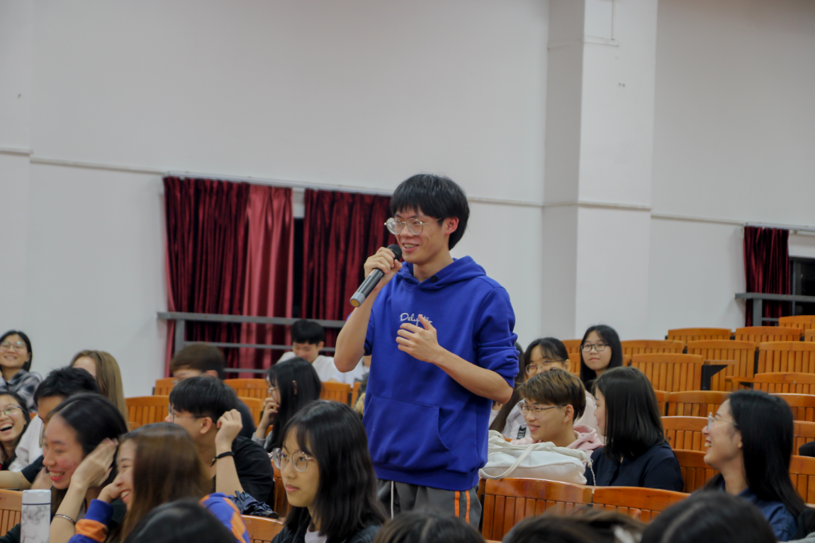 “书中自有颜如玉,书中自有黄金屋”,林伦伦解释道:“读书读多了,知识丰富了,技术学好了,本领掌握多了,气质提升了,自然就有了‘黄金屋’和‘颜如玉’”。当谈到“读书的方法”时,林伦伦重点阐述了学生应如何在考试和读书之间达到平衡,他给同学们介绍了读书的方法,鼓励同学们在应对考试的同时,能读一些喜欢的书和经典文学著作。