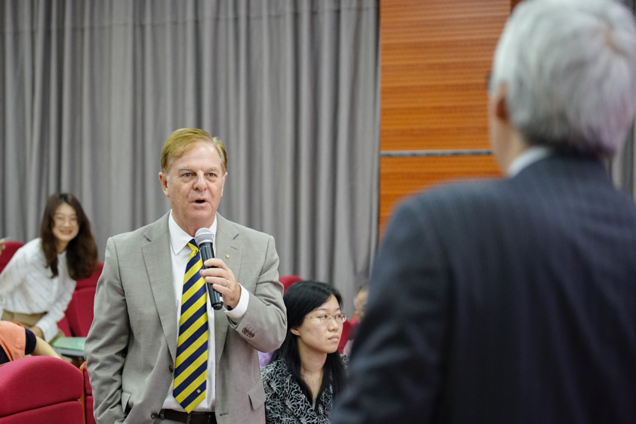 我校校长王庭槐教授,澳大利亚昆士兰大学药学院院长、我校药学院名誉院长、首席教授、学科带头人Peter James Little教授,我校药学院院长陈家树教授、副院长曹颖男副教授及师生代表共计200余人参与讲座。李氏大药厂集团副总经理戴向荣先生,集团人力资源总监张振华女士,兆科药业(广州)研发中心总监殷雷先生应邀出席讲座。