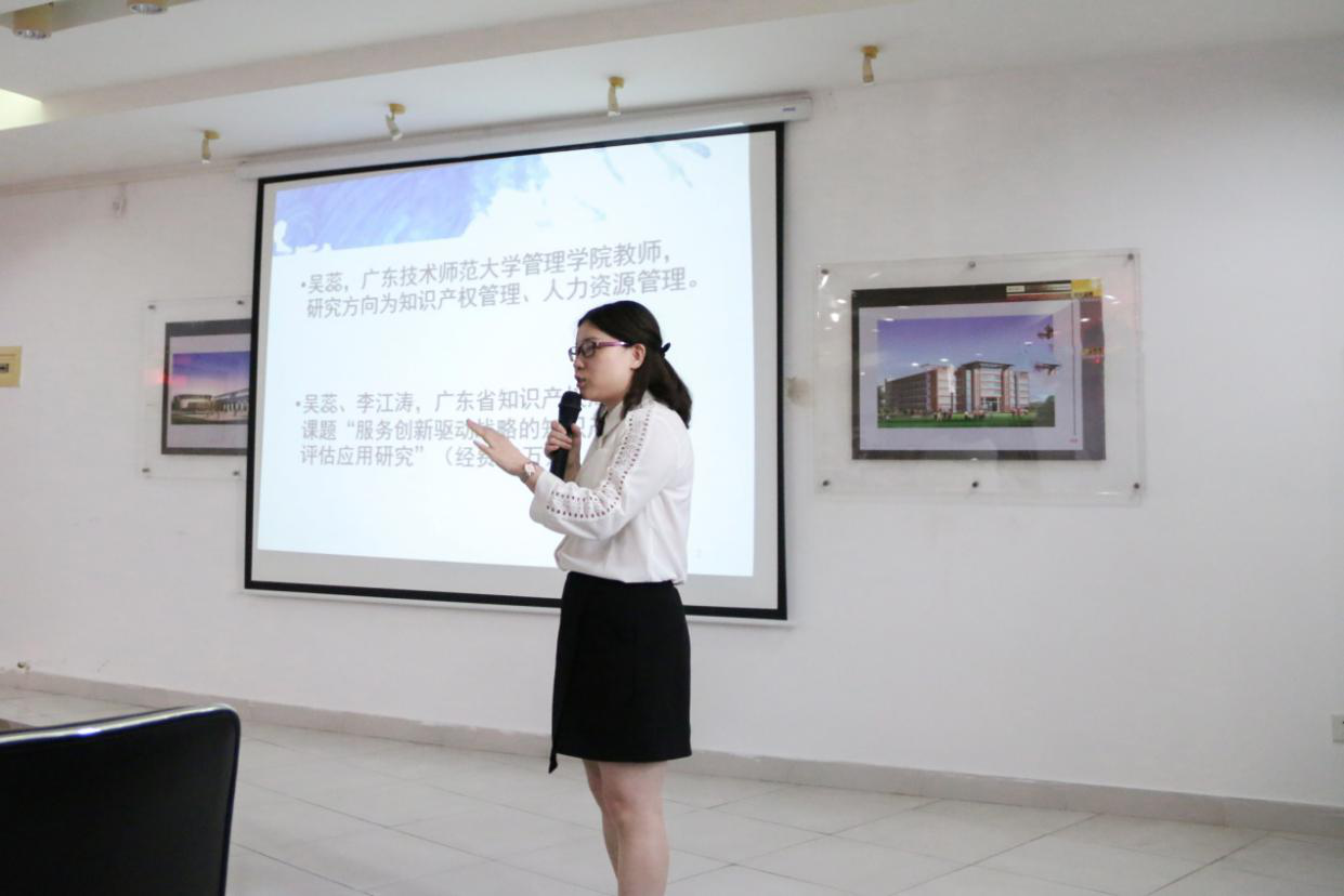在高校知识产权“贯标”工作新形势下,为激发学校师生创新活力,推进学校科学、高效地进行知识产权管理建设工作。4月24日,由beat365英国官网网站新华学院(以下简称我校)主办,beat365英国官网网站新华学院学科与科技管理处承办,主题为“高校贯标与知识产权运营管理”的学者讲坛在广州校区第二会议室举办。讲座特邀广东技术师范大学管理学院院长、广东省知识产权局广东知识产权专家库首批入库专家李江涛教授同李江涛教授研究团队的吴蕊主任共同作有关高校知识产权的价值评估分享。学校各职能部门有关负责人、各院系从事科研及相关工作教职工参会。我校学科与科技管理处处长张玲主持讲座。