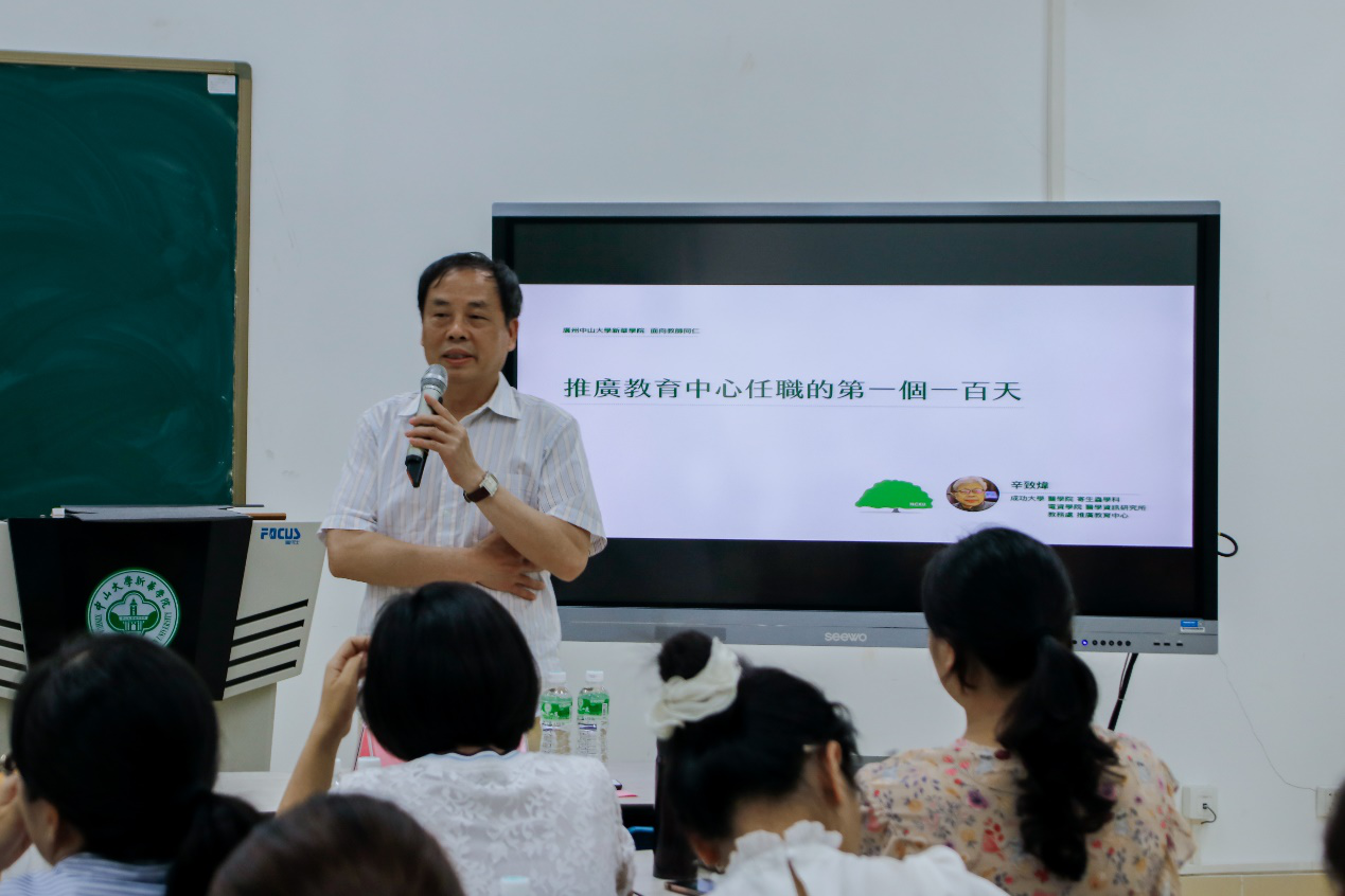 5月21日下午,beat365英国官网网站新华学院(以下简称我校)在东莞校区格物楼②B209特邀台湾成功大学教务处推广教育中心主任、医学系副教授辛致炜博士做客新华学者讲坛,主讲“推广教育中心任职的第一个一百天”的专题讲座,讲座由教务处和人事处教师发展中心承办。教务处处长尹小川主持讲座。