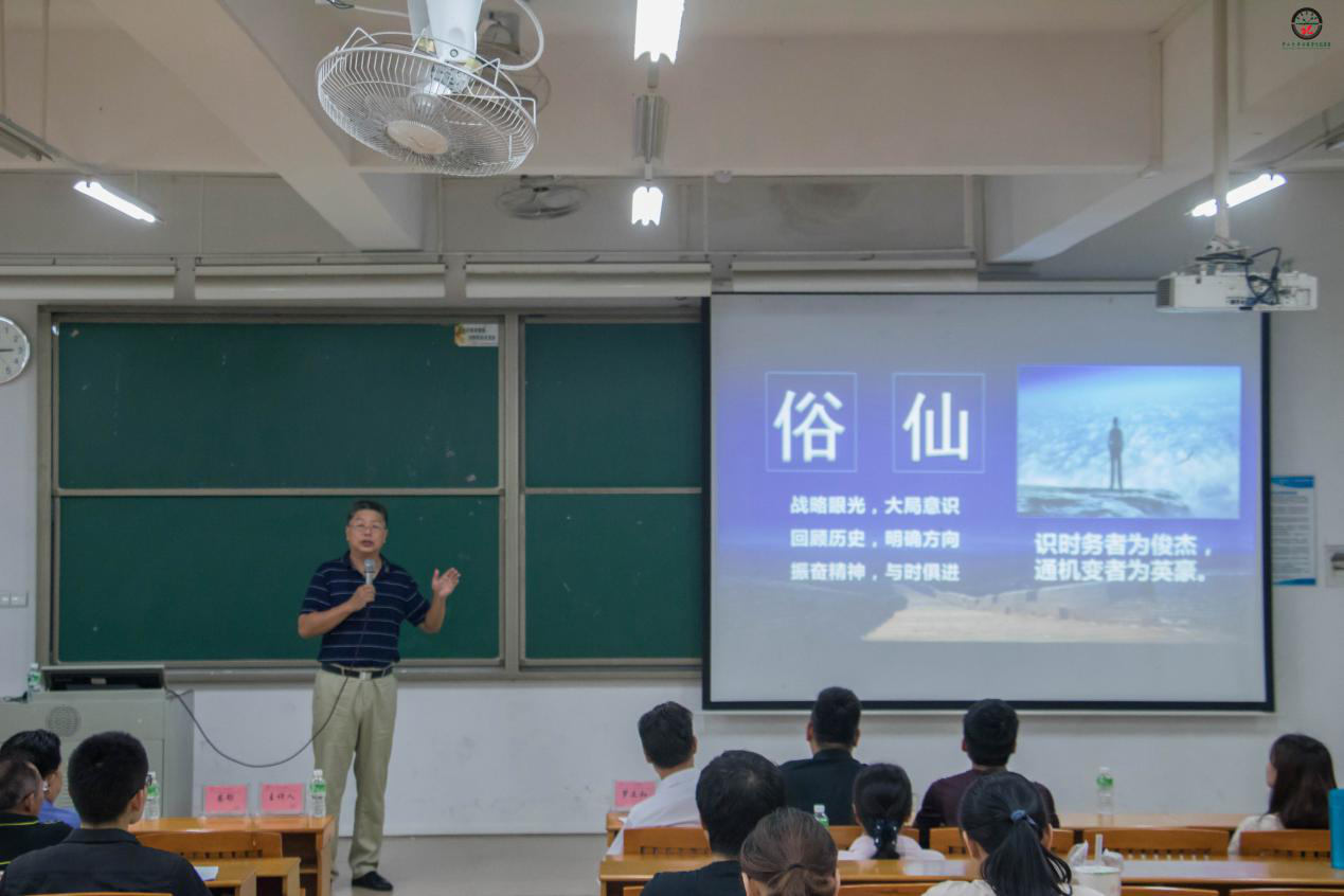 蔡鄂从“俗”“仙”的字表意思出发,他认为,古人置身于清幽美丽的山谷中脚踏实地生活劳作,同时也敢于攀登山顶,回首来路、展望并明确未来前行的方向。他告诫青年大学生不要局限自己的视野、专业和校园,而要有大局意识、全局观念,以开放的心态,放眼国际、放眼未来,着眼新局势。