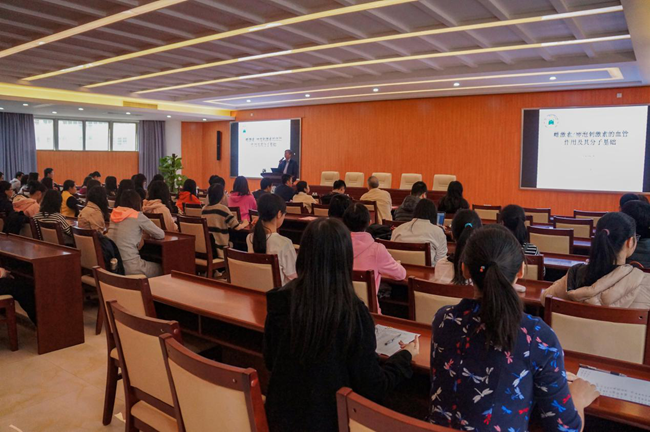 11月20日,广州医科大学基础学院副院长付晓东教授于我校广州校区以“雌激素卵泡激素的心血管作用及其机制”为题开展讲座。我校王庭槐校长、周云书记,药学院陈家树院长及各院系部师生代表参与讲座。
