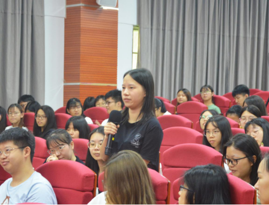 在提问环节,同学们踊跃提问。针对国内外校园学习和生活的异同点问题,Danielle Kamato进行详细的回答:“在学习方面,国外的任课教师通常会把教学资源放到网上,同学们可以随时随地查阅;在生活方面,国外的学生较少在学校住宿,因为校内住宿费用较高,学生通常选择在外面租房子,并且会在空闲时间选择一份与所学专业相关的兼职来补贴学习和生活费用。”针对学生提出的“我们的实验教学方式与国外有何差异?”Danielle Kamato指出,国外每个班的学生人数相对较少,均是依次按照“实验预习-教师讲解-学生操作或进行实验设计-分析实验结果”的步骤进行。