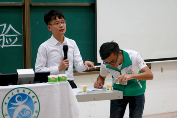 林炜奇师兄开讲前做了个实验,往注满水的杯子里放回形针,看着一个个回形针沉入杯底,大家情不自禁地数起数来。一杯水,明明看着已经很满了,它却仍有容纳上百个回形针的空间。林炜奇师兄说:“我们总是习惯性地为自己设限,过高地估计困难的程度,而低估了自身的潜能,其实每个人内在的潜能都是无限大的!”