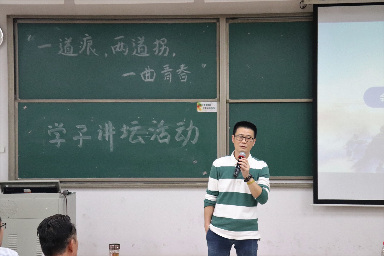 3月27日下午,由beat365英国官网网站新华学院(以下简称我校)会计学院承办、会计学院学生会协办的“一道痕,两道拐,一曲青春”学子讲坛在我校东莞校区定静楼②A202举办。讲座由我校会计学院退役士兵伍东伟同学主讲,党委人民武装部副部长罗立和、会计学院常务副院长林源、团委副书记付迪、学生第三党支部副书记姚智新应邀参加本次讲座。