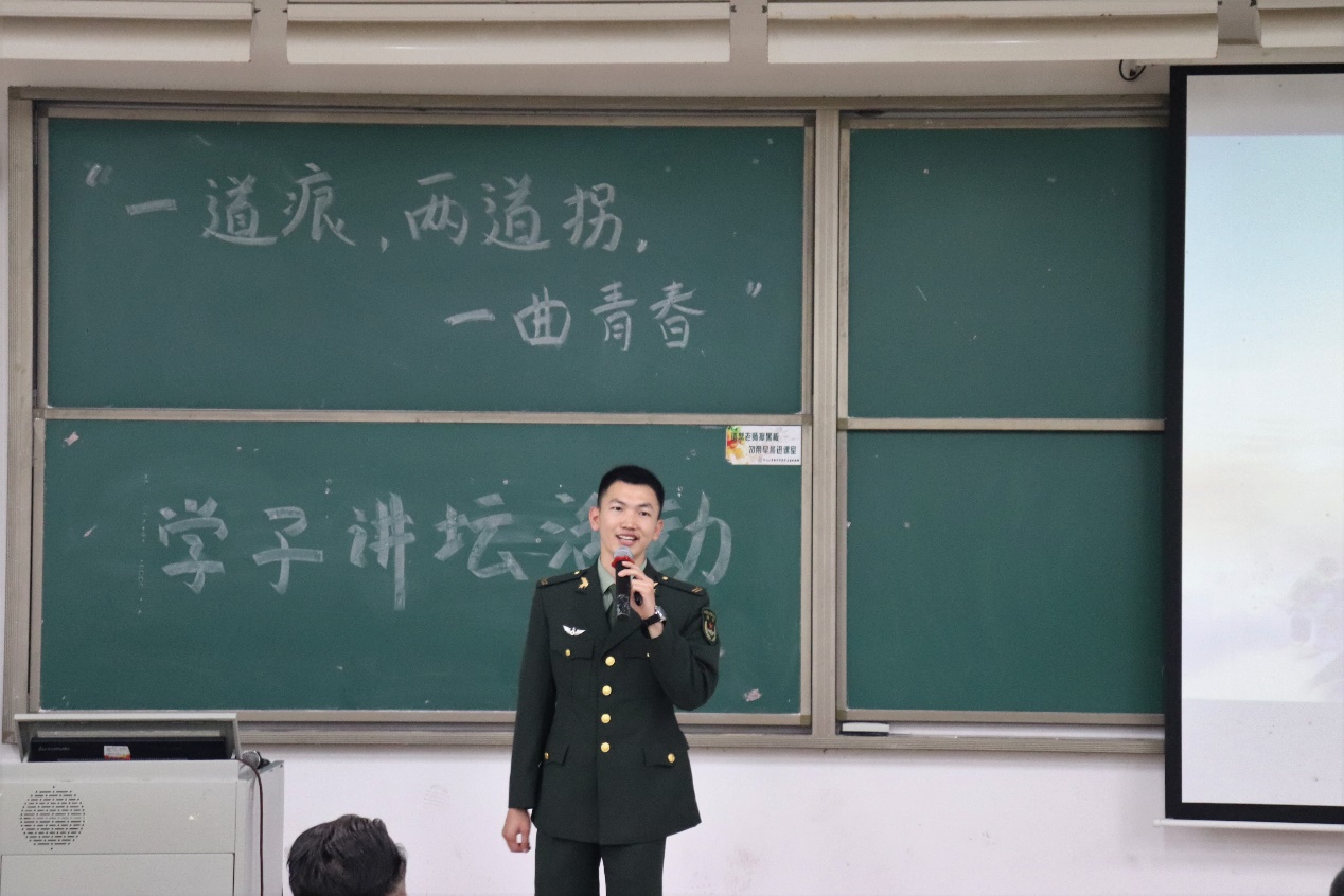 讲坛最后,伍东伟向在座的师生分享了他从军两年的收获。在这两年中,他不仅自身得到了成长,还结识到了一批来自五湖四海的战友;不仅得到了一次弥足珍贵的学习机会,还获得一份政治荣誉,更留下了一段刻苦难忘的美好回忆。