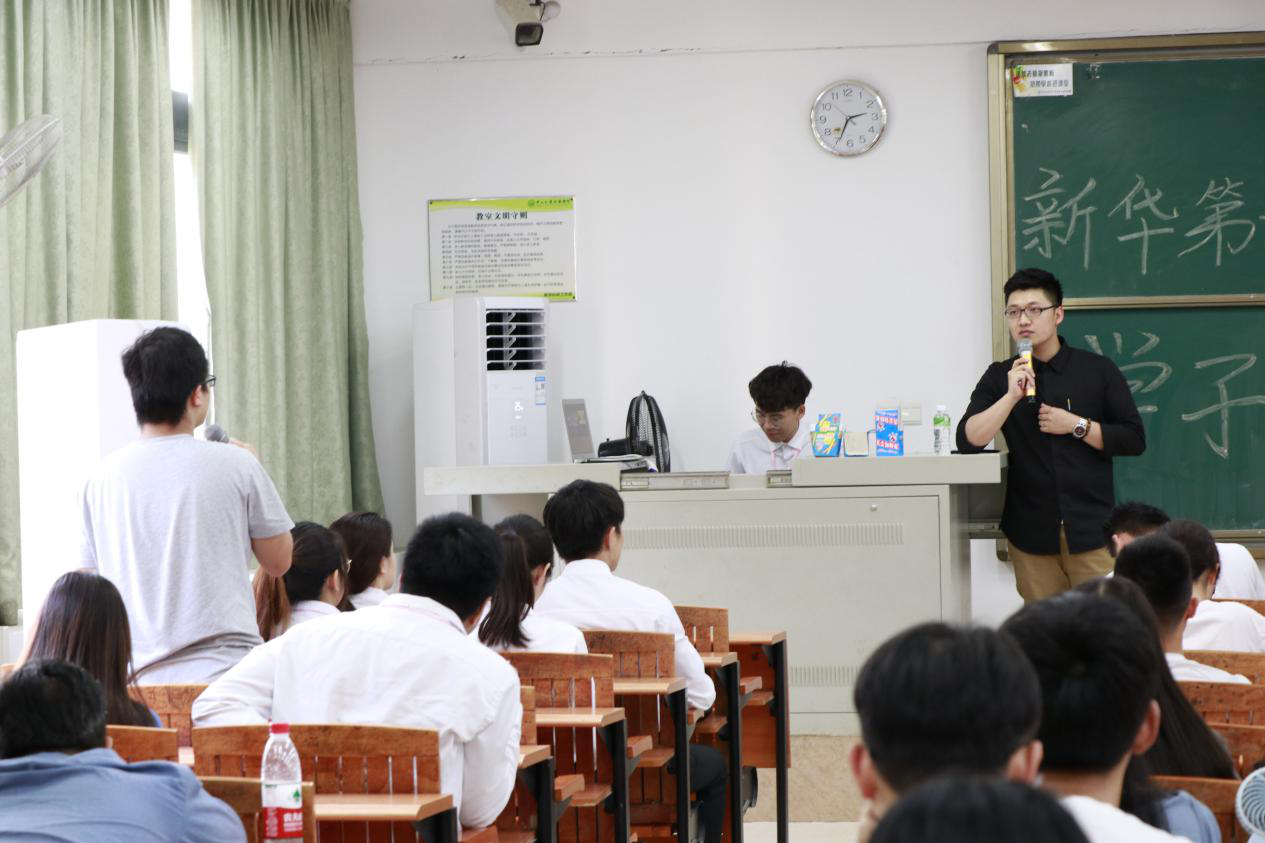 紧接着,吴嘉华结合自身学习工作经历,以“你选择将就择业&成就事业”的话题和现场的同学们进行互动。他向同学们介绍了面试中的“7:38:55”法则:在人际沟通中,真正产生影响力的因素只有:语言,语音,语调,着装和肢体语言。而沟通过程中语言只占7%,语音语调占比38%,占比最大的是着装和肢体语言,占比55%。他指出,在面试中第一印象和沟通表达能力十分重要,同学们在了解面试环节各方面的因素的基础上,从而能够从容应对,制定相应策略,充分展现中大新华学子文明素养和精神风采。
