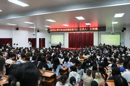 王凯曦结合自身打造“爆款”视频的经验历程,从账号制作过程、受众分析、账号运营等多方面进行讲解,回顾了他的账号创作之路,与同学们分享了账号的创作规律与方法。