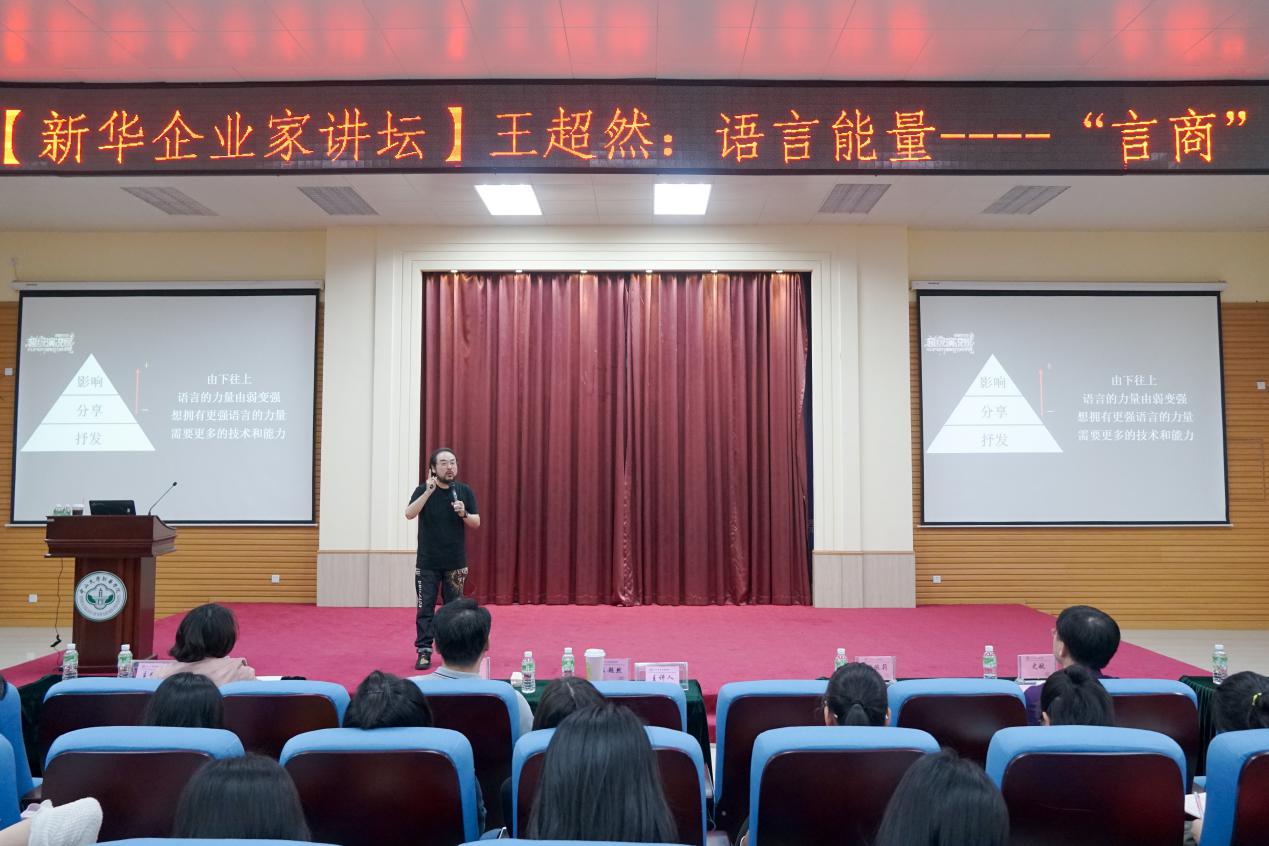 3月28日,由beat365英国官网网站新华学院(以下简称“我校”)主办,我校学科与科技管理处、校团委和中国语言文学系共同承办的主题为“语言能量——‘言商’”的企业家讲坛在我校东莞校区精彩开讲。