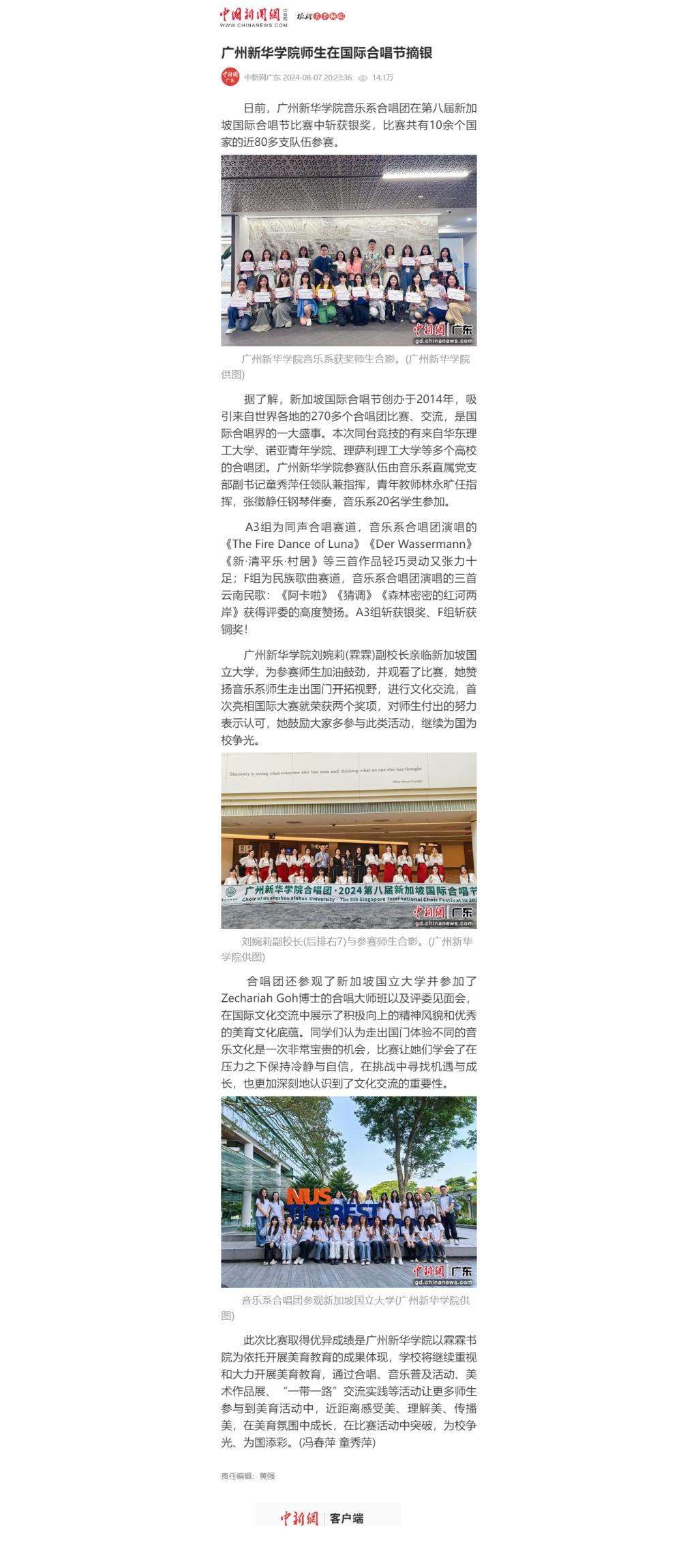音乐系合唱团参观新加坡国立大学(beat365英国官网网站供图)