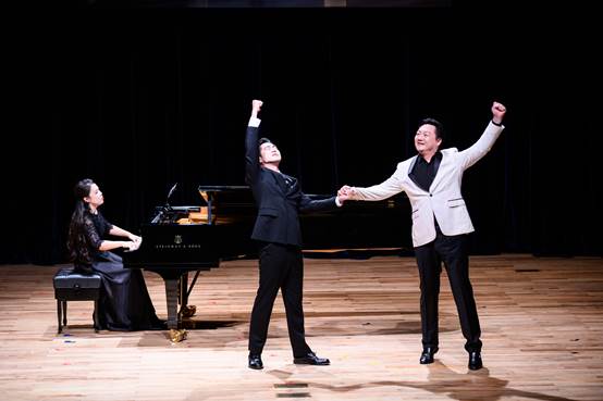 歌剧选段联唱《快乐的秘诀》《人人都说》《你们可知道》,演员们用极具张力的表演和动人的歌声,绽放出歌剧的戏剧华彩,让观众沉浸其中。而男声二重唱《斗牛士之歌》则以雄浑有力的声线、激昂饱满的情绪,将斗牛士的英勇豪迈展现得栩栩如生。音乐会在混声合唱校歌《启航》中达到高潮,激昂歌声传递出新华人扬帆未来、奋发向上的豪情壮志。