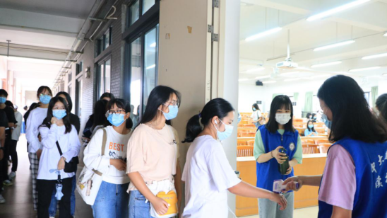 东莞校区新生排队入场进行体温检测
