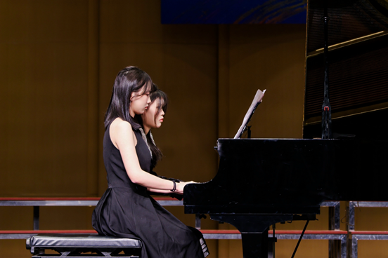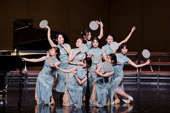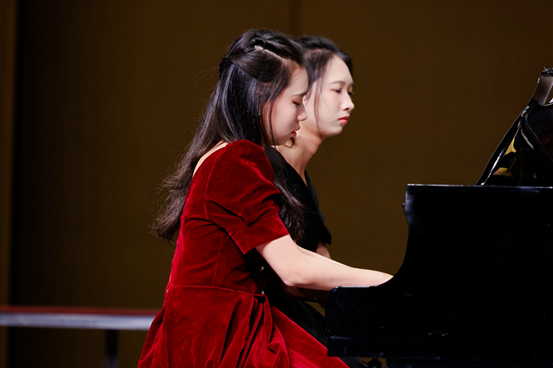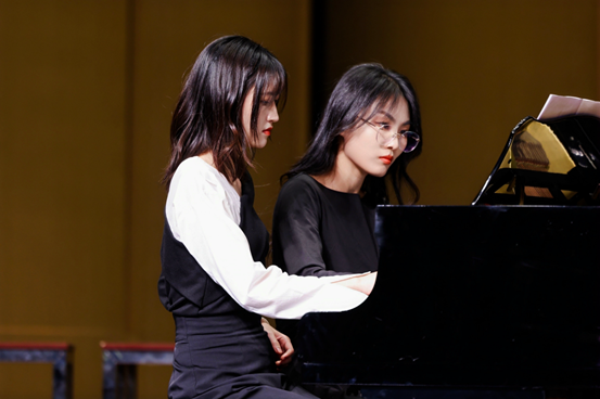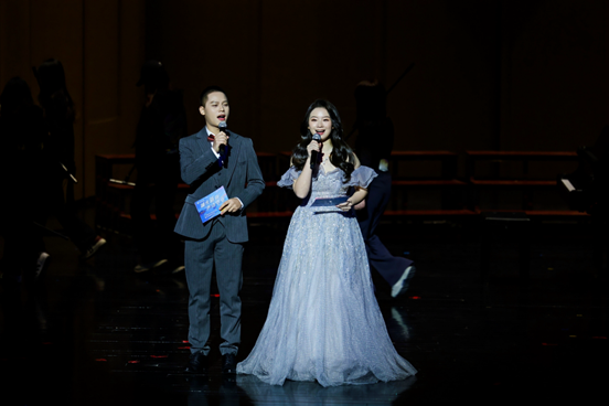 而曾子夏老师、商潆月老师与同学们共同呈现的四手联弹串烧《琴音双绝》无疑是演出的一大亮点,他们巧妙地串联起多首风格迥异的经典曲目,从神秘浪漫的音乐剧《歌剧魅影》到热情奔放的巴西音乐《雀鸟》,再到深情满怀的《唱支山歌给党听》,带领观众在音乐的海洋中畅游,领略了从古典到民族、从浪漫到激情的多元情感体验。