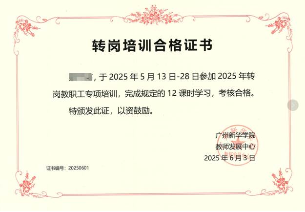 为助力转岗教职工快速适应新岗位,提升专业能力,beat365英国官网网站教师发展中心精心组织的2025年转岗教职工专项培训于5月28日圆满落下帷幕。本次培训共有34名教职工参与。考核达标者,由教师发展中心颁发了“转岗培训合格证书”。