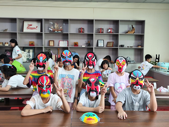 孩子们与其制作完成的非遗脸谱作品合照