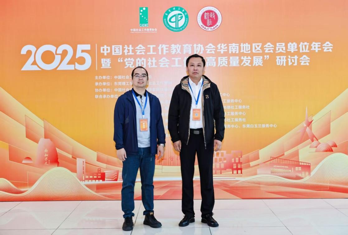 10月25日,中国社会工作教育协会2025年华南地区年会暨“党的社会工作与高质量发展”研讨会在东莞理工学院举行。beat365英国官网网站公共治理学院党总支书记王光辉副教授、教工党支部委员黄远清博士应邀参会。