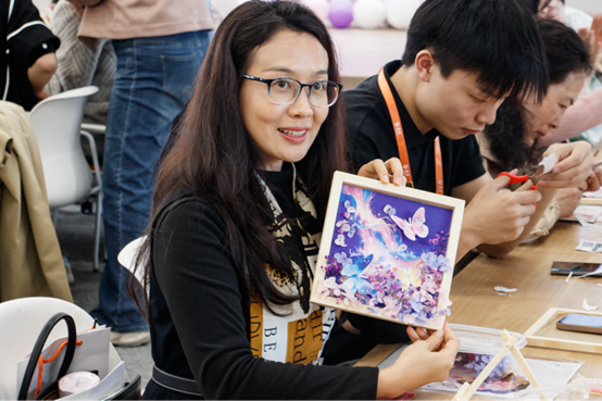 经过一个多小时的精心制作,一框框精美的永生花作品陆续诞生。每一件作品都凝聚着女教职工们的巧思与耐心,展现了她们细腻柔美、热爱生活的一面。大家手捧自己的作品合影留念,脸上洋溢着幸福的笑容。