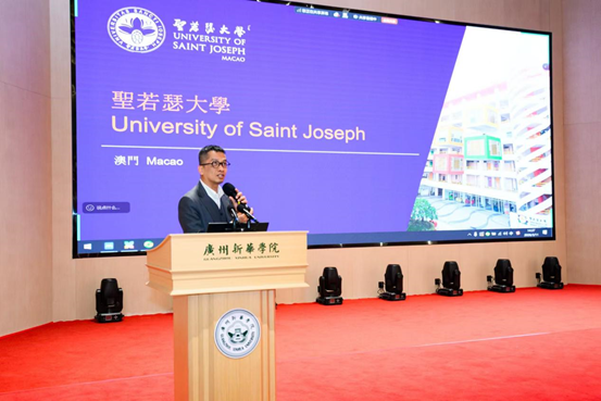 会上,澳门圣若瑟大学招生处李志恒处长介绍了澳门圣若瑟大学的办学概况、特色与优势。他介绍道,国际化与优质教育是该校的核心特色,作为澳门极具国际化的高校,学校既有着深厚的历史传承,也搭建了多元的国际交流桥梁。目前,学校已与全球170余所高校建立合作关系,师生群体来自全球50多个国家,国际化学习氛围浓厚。