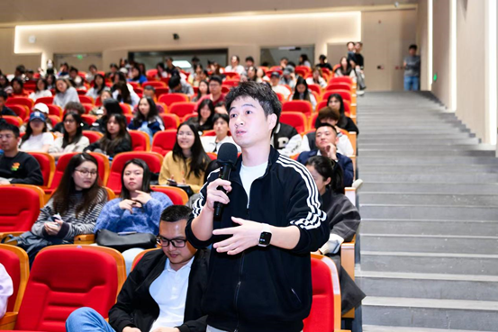 在专属权益讲解与提问互动环节,李志恒处长针对学子关心的硕士授课时长、课程安排等问题进行细致解答,同时以实例回应了学生关于论文答辩语种限制的疑惑,鼓励学子勇于克服英语表达障碍,勇敢迈向国际化读研之路。
