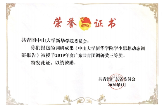 校团委荣获“2019-2020年度广东共青团调研奖”三等奖