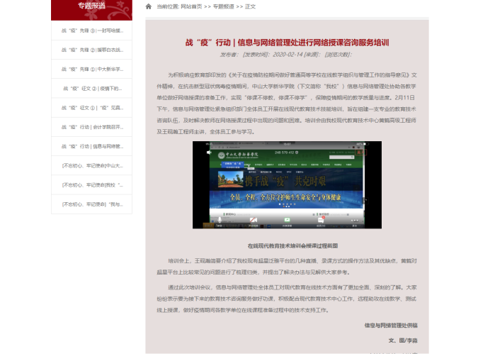 自2020年1月27日起,信息处已开始着手准备网络教学事宜,通过多方面渠道搜集整合了四大慕课平台的培训时间表,并对现有几大网络在线课程平台对比,方便各单位老师自行选择学习。2月11日下午,信息处紧急组织部门全体员工开展在线现代教育技术技能培训,研讨网络教学经验,组建了一支专业的教育技术咨询队伍,并在“中大新华信息化教学研讨群”等相关在线课程群中实行部门内轮班制,实时解决教师在网络授课过程中出现的问题和困难。