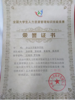 由我校公共治理学院16级人力资源管理专业学子李梓锋、黎锐城、黄嘉翔、陈美君组成的团队荣获本科组二等奖