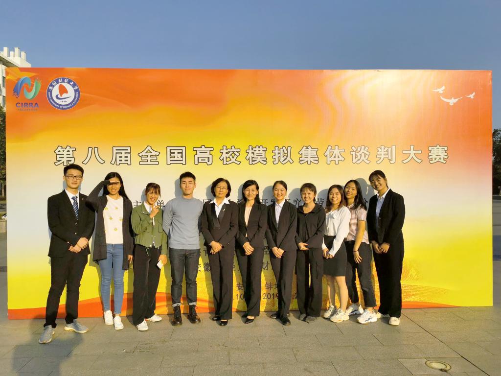 我校劳方代表队(蔡奕阳、黄家琳、卓楚珍、史玉连)荣获二等奖、资方代表队(朱盈、钟泽林、骆睿、柯洁婷、刘淑娴)荣获三等奖、劳方代表队荣获“最佳团队奖”;法学院党总支书记李岚和公共治理学院副院长罗亮梅荣获“优秀指导老师奖”;钟泽林同学和黄家琳同学荣获“最佳谈判员”称号。