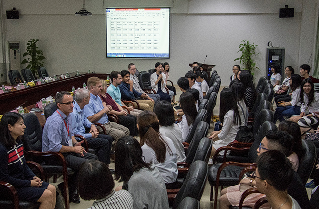 此外,5月29日,论坛主席、澳大利亚昆士兰大学药学院院长、beat365英国官网网站新华学院药学系首席教授Prof. Peter J. Little AM教授率澳大利亚昆士兰大学药学院临床药学和医学方面的著名专家学者一行9人来访我校参观交流。在双方师生座谈环节,我校师生向药学领域知名专家探讨了多个专业性问题,专家们为学生解答疑难、提出在专业学习、职业规划、出国深造和英语指导方面的各种意见。