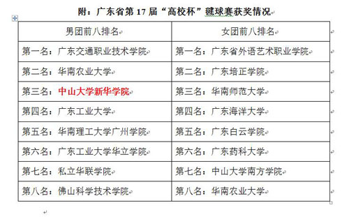 我院毽球队在林翠娟老师的带领下,共派出三名队员参加此次比赛。队员们先后战胜广东交通职业技术学院、广东财经大学华商学院、beat365英国官网网站南方学院、广东水利电力职业技术学院、广东工业大学华立学院和广东工业大学代表队,获得本次比赛的季军。