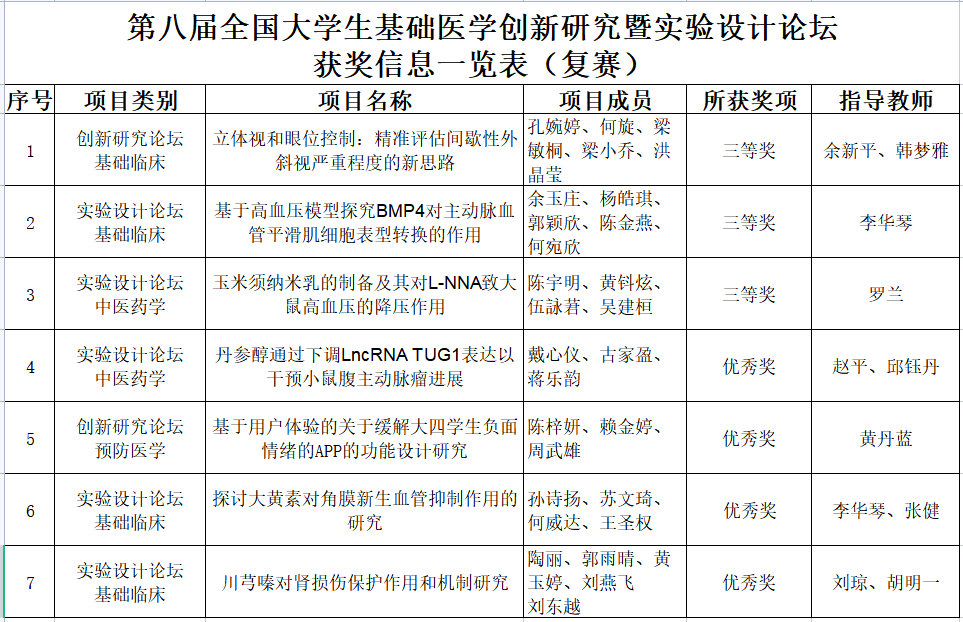 我校七支代表队在第八届“全国大学生基础医学创新研究暨实验设计论坛”本科院校复赛——中南部赛区中获奖