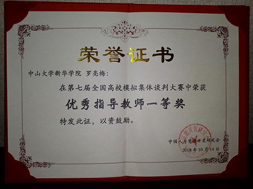 参加本次大赛的两支代表队是法学院和公共治理学院通过笔试与无领导小组讨论的方式选拔出来的,参赛队员在暑假期间多次进行线上会议与系统理论学习,并且在开学后进行了多次模拟集体谈判演练。指导老师罗亮梅和法学院党总支书记李岚老师与同学们共同努力,为参赛队员进行案例分析和疑难问题的解答给予了大量的专业指导,同时积极为参赛队伍在校内外提供相关的后勤保障支持,并且在参赛前带领队员到广东省总工会学习,工会主席多次为队员们普及相关知识和分析现实生活中的谈判案例,开阔了队员们的视野。最终在比赛过程中,法学院学子表现出了良好的思辨能力和逻辑分析能力,公共治理学院学子表现出了全面的专业知识和出色的案例分析能力,我校两支代表队双双获得佳绩。