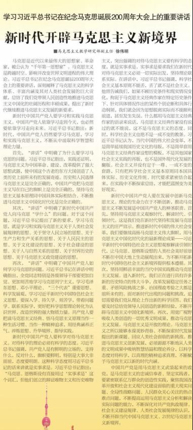 《新时代开辟马克思主义新境界——学习习近平总书记在纪念马克思诞辰200周年大会上的重要讲话》获言论类三等奖