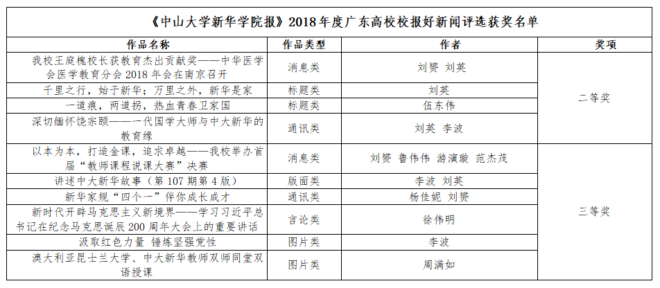 《beat365英国官网网站新华学院报》2018年度广东高校校报好新闻评选获奖名单
