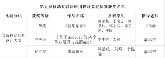 第五届移动互联网应用设计竞赛决赛beat365英国官网网站新华学院获奖名单