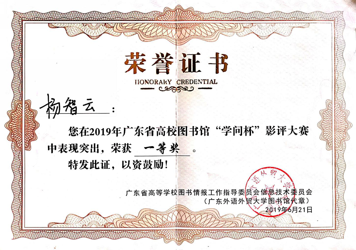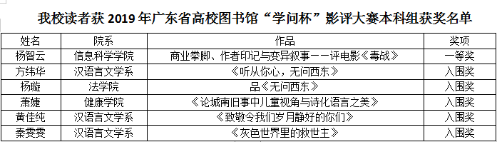 我校在2019年广东省高校图书馆“学问杯”影评大赛中喜获佳绩