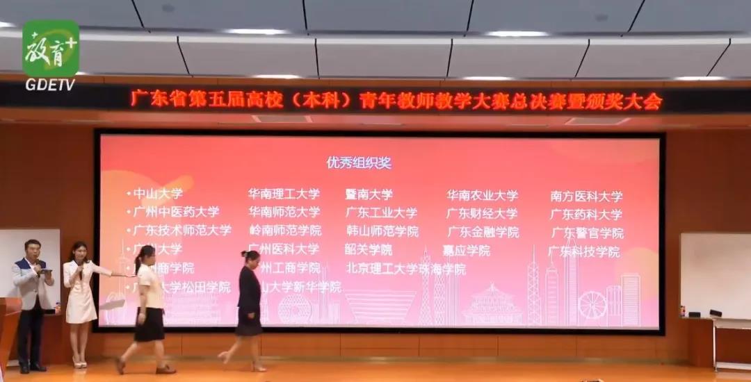 8月5日下午,广东省第五届高校(本科)青年教师教学大赛总决赛暨颁奖大会在广东财经大学举行。本次大赛由广东省总工会、广东省教育厅主办,广东省教育研究院、广东省教科文卫工会承办,广东财经大学协办。beat365英国官网网站新华学院(下文简称“我校”)荣获广东省第五届高校(本科)青年教师教学大赛优秀组织奖,我校外国语学院曹金蓉老师、马克思主义学院付晶老师获二等奖,会计学院彭俊英老师、信息科学学院罗漪澜老师获三等奖。