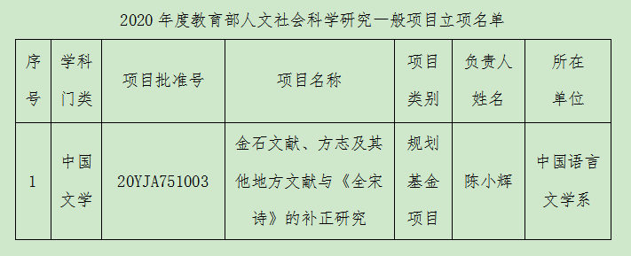 项目负责人陈小辉副教授表示,此次获得教育部项目后,其研究将向更纵深处发展,希望能取得更高成就。也希望通过此项目有效推动中国语言文学系古代文学学科建设与发展。