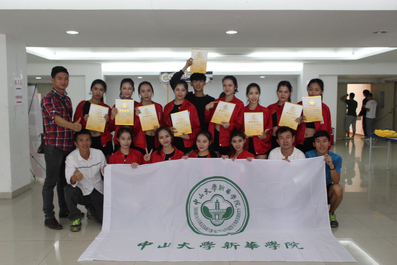 综合风格大齐舞(大学组)冠军、爵士舞全国规定套路(大学组)冠军获奖队员合影