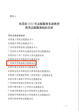 我校扬航志愿服务队荣获“东莞市2022年志愿服务先进典型优秀志愿服务组织”称号