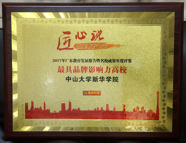 中大新华荣获2017广东教育发展报告暨名校成果年度评鉴“最具品牌影响力高校”