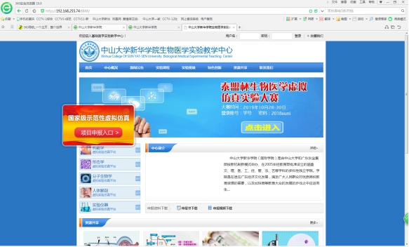 我校我校生物医学虚拟仿真实验教学中心网站截图