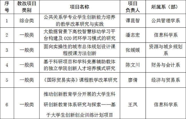 本次获批的6个教改项目包括1个综合类项目和5个一般类项目,详情如下: