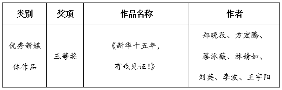 近日,广东省委教育工委公布了2021年度高校宣传思想工作优秀作品评选结果。我校报送的作品《新华十五年,有我见证!》获优秀新媒体作品三等奖。