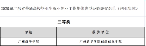 我校创新创业学院获2020届广东省普通高校毕业生就业创业工作典型经验集体(创业集体)三等奖