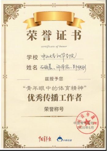 中大新华记者站荣获“青年眼中的体育精神”短视频征集大赛“优秀校园团体”荣誉称号