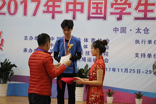2017年11月25至29日,2017年全国学生毽球锦标赛在苏州健雄职业技术学院举行,林翠娟老师带领的beat365英国官网网站新华学院毽球队取得了男子单人赛冠军、混双人赛第四名、男子双人赛第六名和男子三人赛第六名的好成绩。