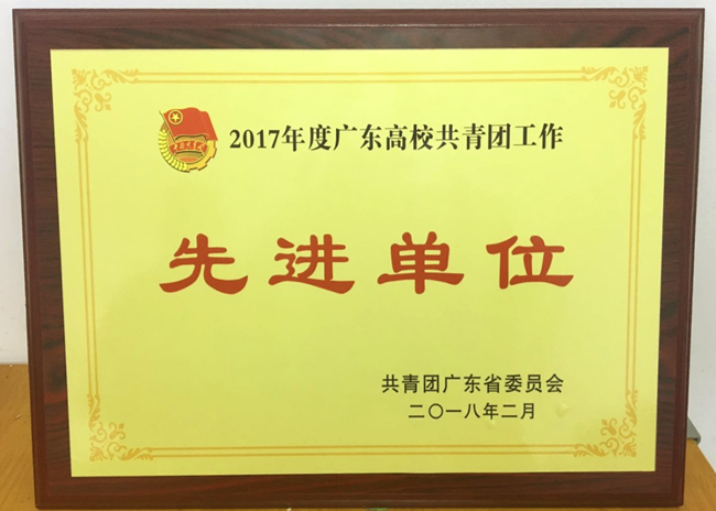 我校团委荣获2017年度“广东高校共青团工作先进单位”荣誉称号